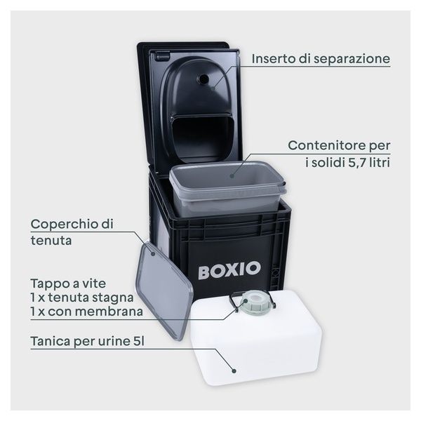 La BOXIO TOILET è l'alternativa ideale alle toilette chimiche. Portatile e ultraleggera per il giardino, il campeggio e altro ancora.