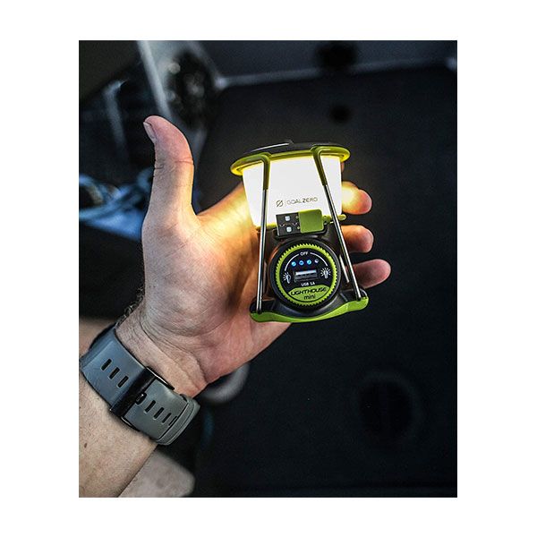La potente e compatta Lanterna Goal Zero Lighthouse Mini, con i suoi 210 Lumen, dimostra che le dimensioni non contano. È modulabile e funziona per oltre 500 ore in modalità risparmio – funge anche da power bank per ricaricare il cellulare grazie alla porta USB integrata.