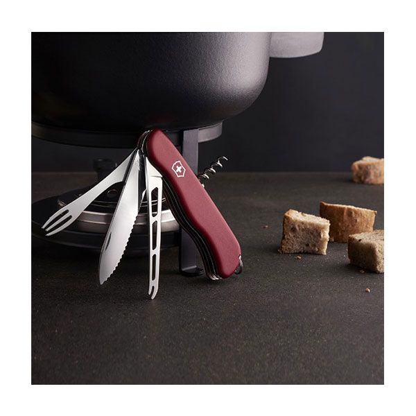 Il Cheese Master è lo strumento perfetto per l'appassionato di formaggi. Con una lama specifica per tagliare sapientemente i formaggi freschi e una forchetta da fonduta (più altre sei multifunzioni), questo strumento multiuso è il risultato di un'eccezionale ingegneria svizzera nata dalla stretta collaborazione con l'Unione svizzera del formaggio.