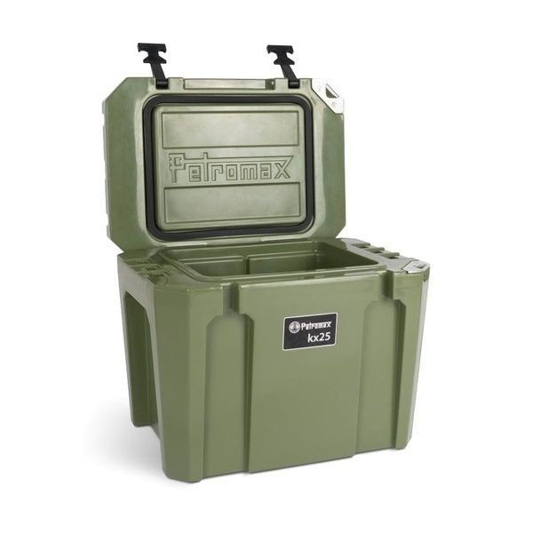 Vuoi essere ben preparato per passare dei giorni senza elettricità? La ghiacciaia Petromax KX25 ti accompagna nelle tue avventure più lunghe. Il sistema ultra passivo di raffreddamento opera con il ghiacchio disponibile in commercio, a pacchi o con il ghiacchio secco. La doppia parete isolata mantiene il ghiaccio freddo fino a 12 giorni. Beneficio imbattibile: l'interno della ghiacciaia, con un volume di 25L, è stato pensato per trasportare in posizione eretta 24 lattine da 0,33ml o 12 bottiglie da 1L. Anche il pesce appena pescato può essere conservato all'interno della ghiacciaia Petromax.