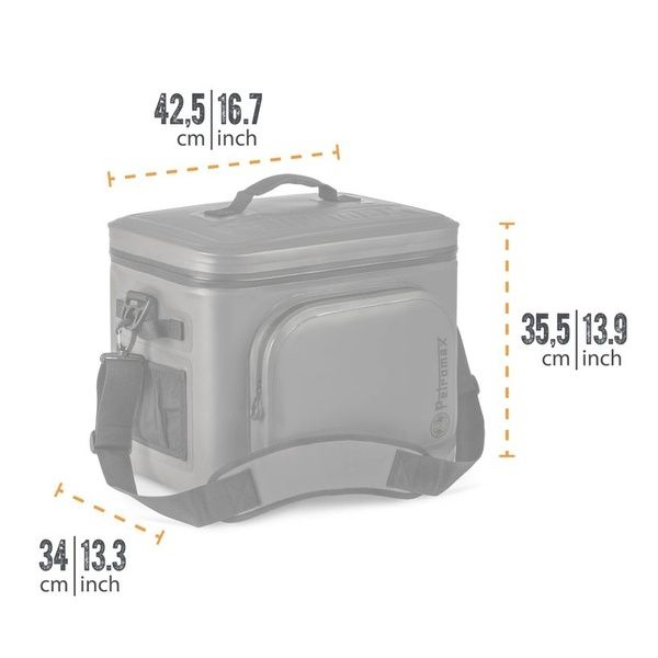 La borsa frigo di Petromax è l'attrezzatura indispensabile da avere durante le avventure fuori casa dai 4 ai 6 giorni in quanto non necessita di elettricità. Mantiene i tuoi cibi e le tue bevande fresche per diversi giorni. Puoi abbinare il colore della borsa allo scopo della tua avventura, che si tratti di portare con sè provviste durante la caccia, una gita in barca, un campeggio, una giornata di pesca o un picnic. Grazie al suo tessuto in nylon idrorepellente e le cerniere impermeabili, i cubetti e i pacchi di ghiaccio possono essere riposti nella borsa per mantenere fresche le bavande, le verdure e la carne. Potrai portare la tua borsa frigo ovunque tu vada trasportandola tramite le maniglie oppure mettendola a tracolla. Con l'aiuto degli occhielli per moschettoni, è possibile posizionare la borsa frigo Petromax in modo sicuro su una barca o su un'auto. Le quattro tasche offrono spazio per piccoli oggetti di equipaggiamento come il treppiede, il coltellino o l'accendino. L'apribottiglie integrato consente di aprire i tappi delle bottiglie direttamente dalla borsa.