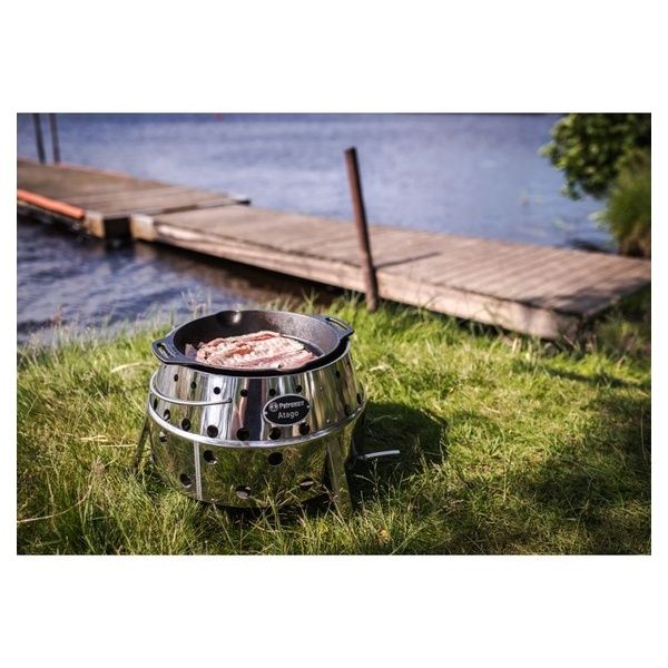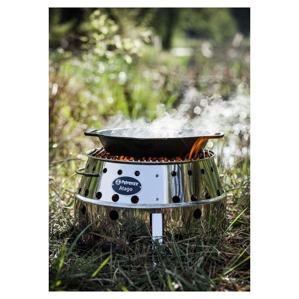 Per i piatti in padella, la griglia Petromax e il braciere senza gambe possono essere collocati sopra l'apertura rotonda dell'Atago. Poiché la ciotola o il braciere sono circondati dall'Atago, è assicurata una resa termica ottimale.