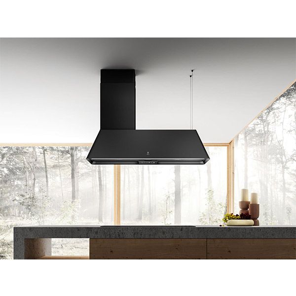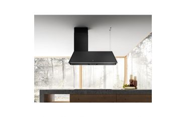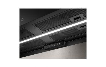 Ikona Maxxi Pure è disponibile nelle finiture nero effetto soft touch o acciaio inox e offre un’ampia varietà di modalità d’istallazione: aspirante o filtrante, a parete o sospesa, con o senza camino di aspirazione, posizionabile sia sul lato destro che su quello sinistro