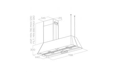 Con 120cm di ampiezza e l’intramontabile forma piramidale, si integra perfettamente nello stile di ogni cucina e grazie alla strip LED da 7W permette di illuminare il piano di lavoro in modo efficace con bassi consumi.