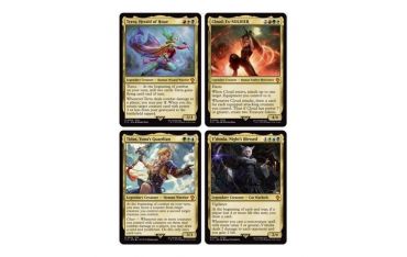 - Collector Sample Pack in ciascun mazzo: ciascuno contiene 2 carte con trattamento speciale rare o mitiche, di cui 1 foil tradizionale