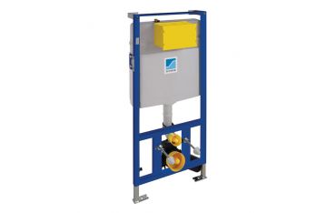 Telaio di supporto WC verniciato a polvere colore blu, profilo quadrato 40x30 mm con cassetta incasso UP 199 preassemblata