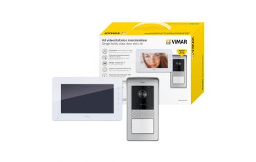 Per le esigenze di semplici impianti videocitofonici, sono disponibili nuovi kit monofamiliari e bifamiliari, con monitor 7” vivavoce, nelle versioni con tastiera capacitiva o con schermo touch screen. La targa è fornita con cornice parapioggia, lettore RFID per l'attivazione di 2 uscite tramite chiavette a transponder e cartellino portanome retroilluminato; consente di realizzare impianti monofamiliari, bifamiliari e quadrifamiliari. Per i collegamenti tra targa esterna e monitor sono richiesti solo 2 fili per una distanza massima di 100 m tra la targa e l’ultimo monitor. Ai kit preconfezionati possono essere aggiunti altri 2 monitor per ogni pulsante di chiamata e un’altra targa.