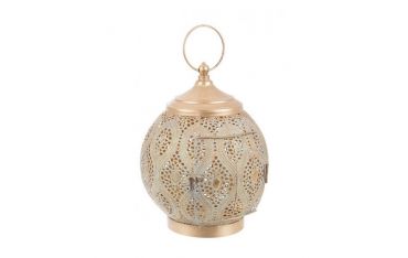 Lanterna in metallo della serie Namid con elaborati dettagli di design in un meraviglioso colore champagne, che si abbina perfettamente con decorazioni d'arredo etniche, moderne e glamour. Ha una maniglia per appenderla in alto ed è adatta per arredare spazi esterni ed interni.