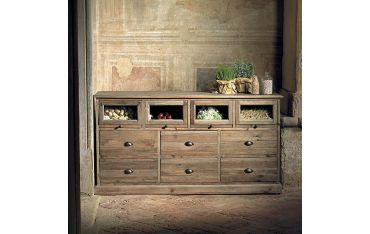 Cassettiera in Pino Vecchio 6 Cassetti 4 Vetrate Guarnieri Liquirizia