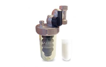 Dosatore proporzionale di polifosfati per uso domestico in polvere o cilindretti con speciale ghiera ruotabile per posizionare gli attacchi (con rotazioni a passi di 45°), in posizione orizzontale, verticale e anche obliqua.
