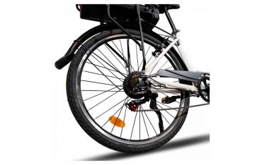 L’efficienza della batteria posteriore da 36V 10Ah ti permetterà in tutta facilità di avere un’autonomia di 60km*, grazie anche alla potenza del motore da 250W con cui potrai raggiungere una velocità di 25km/h. Inoltre, sul portapacchi posteriore, potrai caricare la tua spesa e trasportarla comodamente lungo il tragitto fino a casa. Le ruote da 26” e il cambio Shimano a 6 velocità completano la bicicletta elettrica.