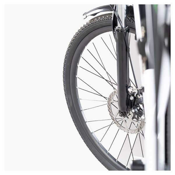 La massima stabilità garantita dalla Queen 26 grazie ai freni a disco anteriore e posteriore, alle sue ruote da 26” e alle ottime sospensioni anteriori, rendono la pedalata assistita agevole e sicura su qualsiasi tipologia di terreno. Questa e-bike ha una batteria da 36V 10Ah integrata nel telaio ed un’autonomia fino a 60km. Può raggiungere una velocità massima di 25 km/h*, merito del suo motore da 250W e del cambio Shimano a 6 marce.