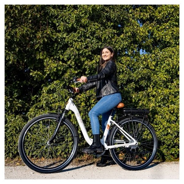 La bicicletta Marilyn ha come obiettivo il comfort di guida, ecco perché il telaio color bianco ghiaccio da 19” in alluminio leggero permette di manovrarla con facilità e con uno stile inconfondibile, mentre il cambio Shimano a 7 velocità consentirà di scegliere la velocità perfetta, per adattarsi al meglio alle diverse situazioni di guida.