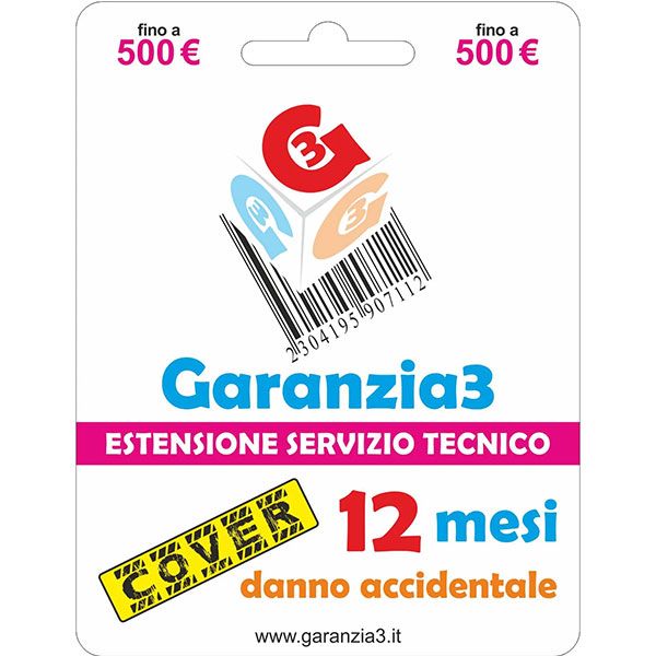 Estensione del Servizio Tecnico Fino a 500 Euro COVER Danno Accidentale 12 Mesi Garanzia3 - G3CPD500