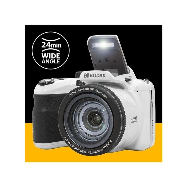 La fotocamera digitale KODAK PIXPRO AZ425 consente di accedere facilmente a funzioni ad alte prestazioni, sia che siate fotografi esperti o principianti. Dallo zoom ottico 42x e dalla stabilizzazione ottica dell'immagine ai video Full HD e alle foto cristalline da 20 megapixel, le possibilità di utilizzo sono infinite.