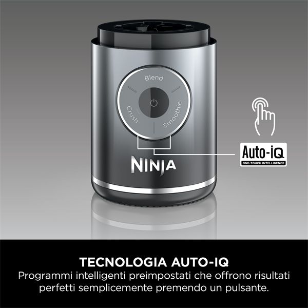 Tecnologia Auto-iQ: la tecnologia Auto-iQ di Ninja utilizza sequenze di impulsi e pause e l’affilata lama CrushBlade per tritare anche gli ingredienti più difficili. Controlla la miscelazione con la modalità Manual Blend (Miscelazione manuale) di 30 secondi, oppure lascia che il frullatore faccia il lavoro al posto tuo con le modalità automatiche Crush (Tritatutto) e Smoothie (Smoothie).