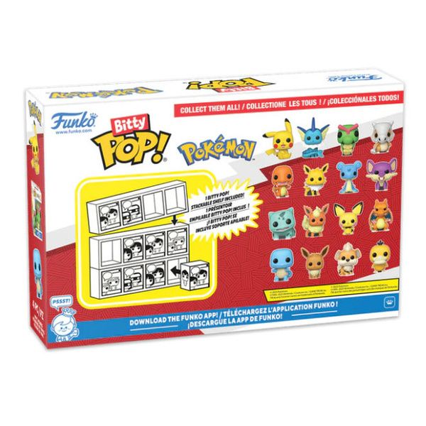 I Funko Pops sono stati rimpiccioliti in Bitty Pops! Raffigurano personaggi di film, serie TV, anime, fumetti, sport, videogiochi e altro ancora. I Bitty Pops! sono confezionati in custodie rigide in acrilico con coperchi inferiori staccabili. Le figure in vinile sono alte circa 2,3 cm. Sono presenti quattro figures per confezione singola.