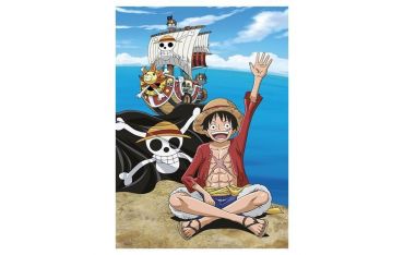 Coperta con Monkey D.Luffy e Thousand Sunny del manga One Piece. Dimensioni 100x140cm. Materiale 100% poliestere.