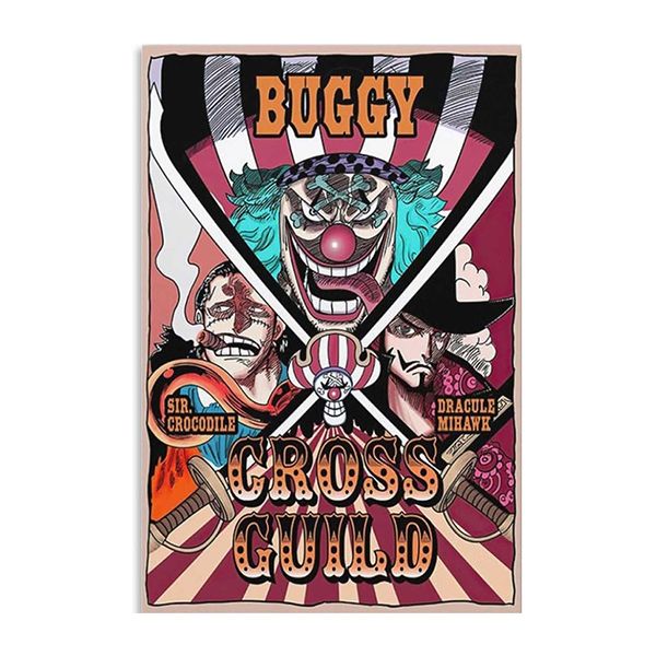 Una nuova Alleanza di Pirati si è formata per combattere il potere della Marina: Cross Guild! Questa alleanza è composta da 2 ex grandi corsari Dracule Mihawk e Sir Crocodile, guidati dal nuovo Imperatore dei mari, Buggy! La rivoluzione nel mondo dei pirati è in corso! Unisciti alla resistenza contro la marina con questo poster di One Piece di GB eye!