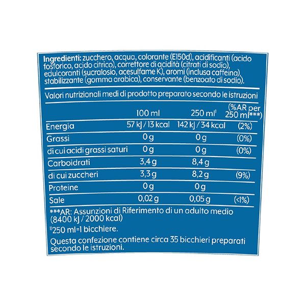 Concentrato per la preparazione di bevande dissetanti gassate al gusto Pepsi. Con SodaStream potrai avere bibite perfette in pochi secondi, con calorie ridotte rispetto alle normali bevande in commercio. Con una confezione da 440 ml di prodotto si possono preparare 9L di bevanda.