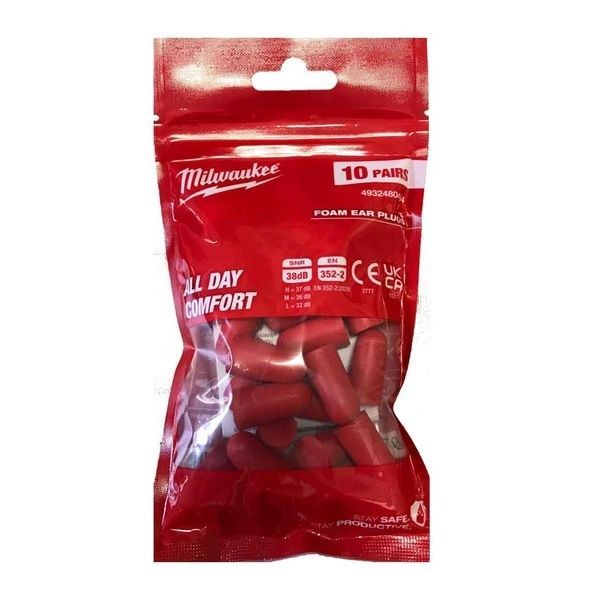 Gli inserti auricolari monouso in schiuma Milwaukee hanno un’efficiente attenuazione del rumore, SNR = 38 dB.