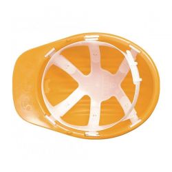 Elmetto protettivo da lavoro in politene con bardatura in plastica regolabile a 6 punti e fascia antisudore. Caschetto antinfortunistico certificato EN 397. Garantisce isolamento elettrico fino a 440 V. Casco antiurto modello economico. Peso 380 g. Colore giallo