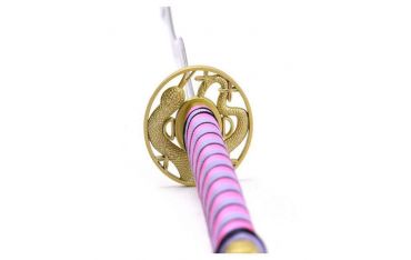 Katana ornamentale ispirata alla katana di Obanai Iguro della serie anime Demon Slayer. Lama in acciaio al carbonio, tsuba in metallo, impugnatura in legno.