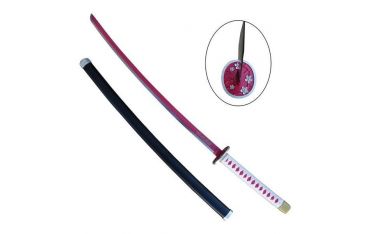 Katana ornamentale ispirata alla katana di Kanao Tsuyuri dalla serie anime Demon Slayer. Lama in acciaio al carbonio, fodero e impugnatura in legno, tsuba in metallo.