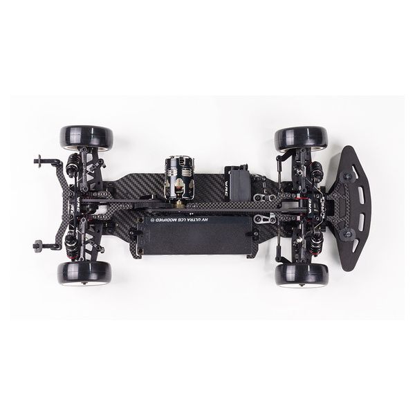 Baricentro abbassato, doppio ponte in fibra di carbonio, telaio con un supporto motore montato centralmente, supporto servo a baricentro basso, supporto per batteria a cambio rapido, torri e ammortizzatori a profilo ultraribassato, supporti per il corpo facilmente regolabili, nuovo blocco sterzo anteriore alu7075 con leveraggio basso, supporto per il corpo posteriore basso, carrozzeria ad alte prestazioni inclusa.