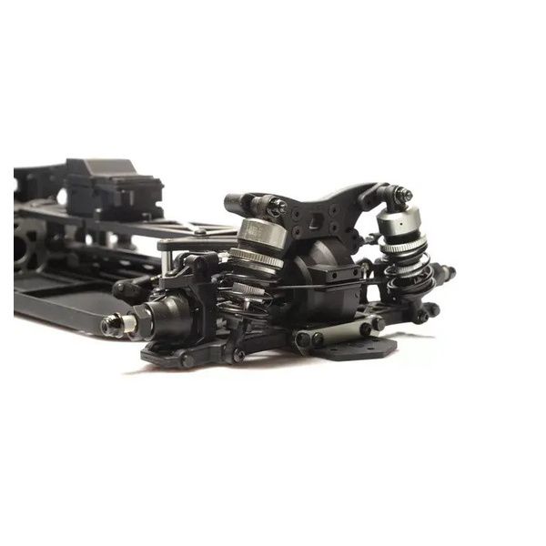 Il telaio a vasca completamente chiusa con trasmissione a trazione integrale incapsulata è ottimo anche come auto da pioggia e da parcheggio. I cuscinetti a sfera su tutta la catena cinematica garantiscono un funzionamento regolare. Gli ammortizzatori di grande volume, gli alberi cardanici CVD all’anteriore e le barre antirollio su entrambi gli assi completano il pacchetto complessivo con componenti di messa a punto collaudati e pronti all’uso. A seconda della pista, la geometria delle sospensioni può essere completamente regolata.