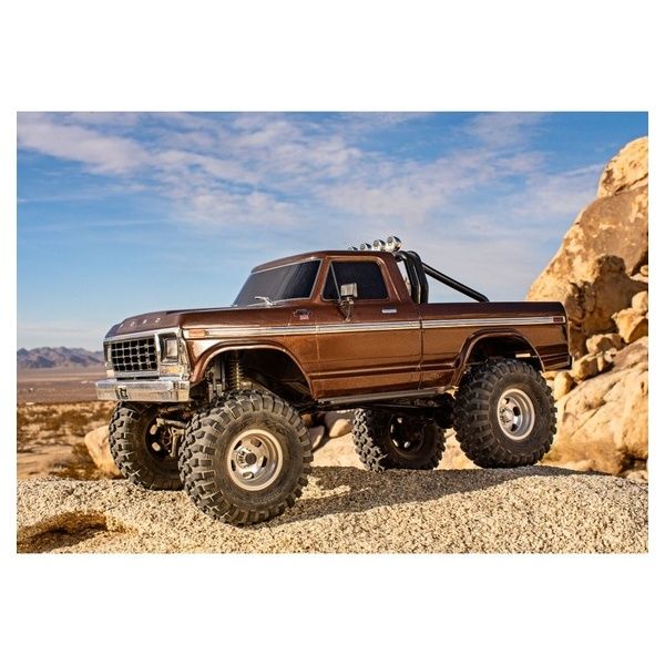 Traxxas eleva l'avventura in scala con la TRX-4® Ford F-150 1979 High Trail Edition. Il TRX-4 High Trail Edition è il veicolo perfetto per il guidatore che vuole tutto: capacità su tutti i terreni estremi, aspetto in scala sbalorditivo e durata Traxxas-Tough™.