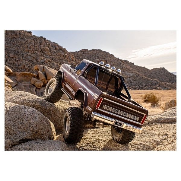 Ford F-150 1979 High Trail Edition si scrolla di dosso fango, neve e ruscelli con la sua elettronica impermeabile. Il controllo della velocità e i servi sono impermeabili e il ricevitore è completamente protetto da un involucro a tenuta stagna. Come tutti i modelli TRX-4, Ford F-150 1979 offre avventure per tutte le stagioni.