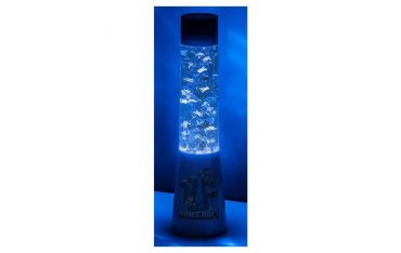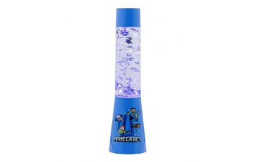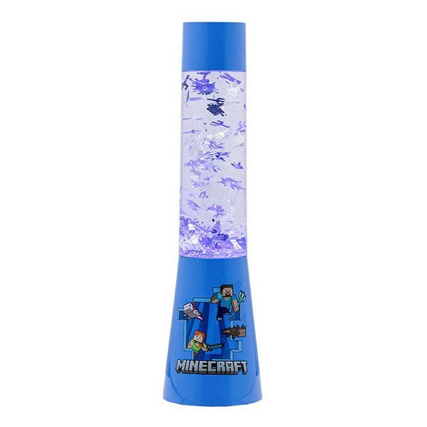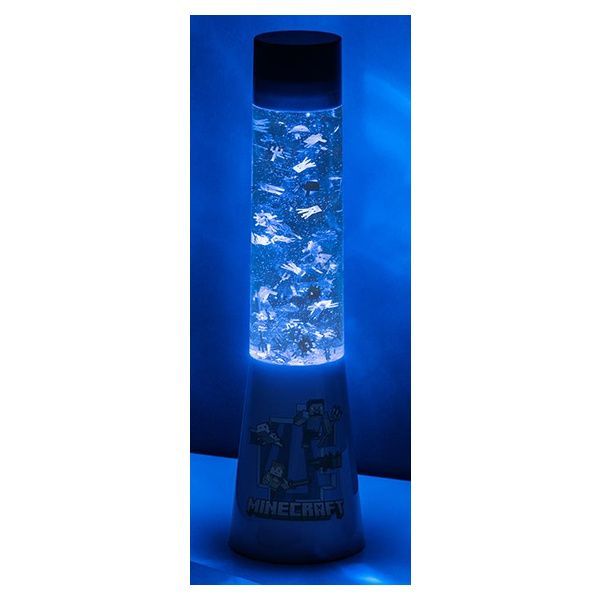 Lampada a flusso liquido blu con glitter in sospensione raffiguranti personaggi di Minecraft, alimentata da 3 batterie AAA (non incluse).