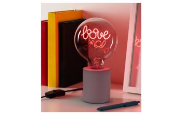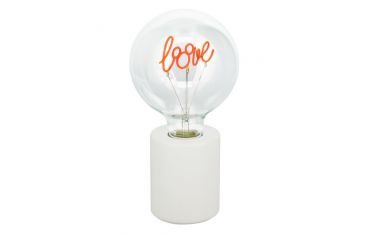 Lampada LED Paladone con base in ceramica (Bianca Opaca) e Lampadina in vetro con il filamento interno a forma di scritta Love con la O di Mickey Mouse.