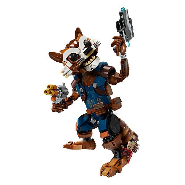 Con il set LEGO Marvel Rocket e Baby Groot (76282) puoi far salire di livello il gioco d'azione dei bambini e delle bambine da 10 anni in su, costruendo l'action figure di Rocket Raccoon alta 22 cm, con parti articolate e ricca di dettagli originali. Molto più di un semplice gioco da supereroi da costruire per bambini, il modellino del personaggio Marvel di Rocket Raccoon è una riproduzione realistica di una delle iconiche figure del film Guardiani della Galassia di Marvel Studios.