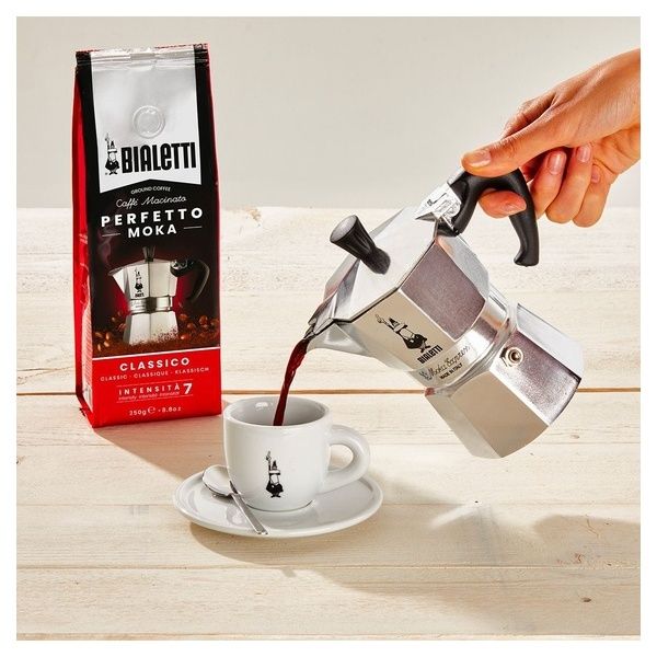 Bialetti ha perfezionato negli anni il suo design caratteristico, mantenendo invariate le caratteristiche funzionali e di utilizzo della Moka: la caldaia ottagonale in alluminio, l'esclusiva valvola ispezionabile e di facile pulizia, il filtro, e il raccoglitore che accoglie l’essenza dell’estrazione del caffè, nero, corposo e caldo.