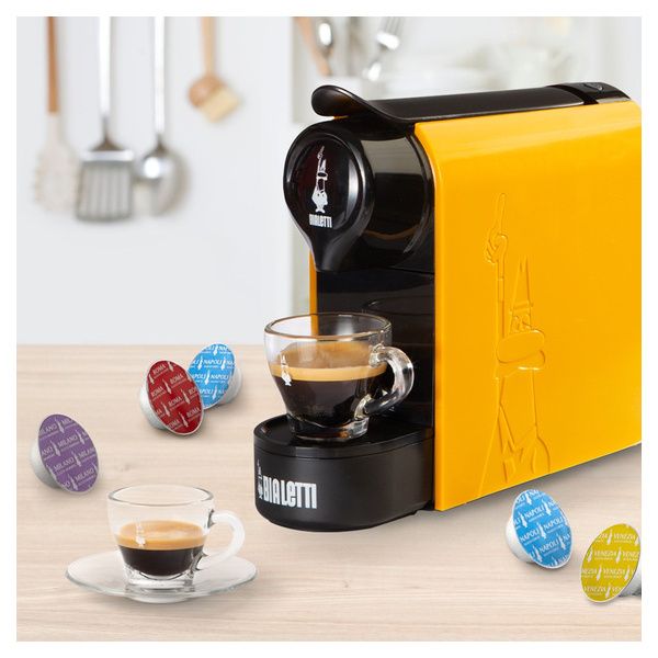 La macchina del caffè a capsule Gioia prepara l'espresso perfetto grazie alle capsule Caffè d'Italia Bialetti, disponibili in una vasta gamma di miscele dagli aromi e dai sapori inconfondibili.