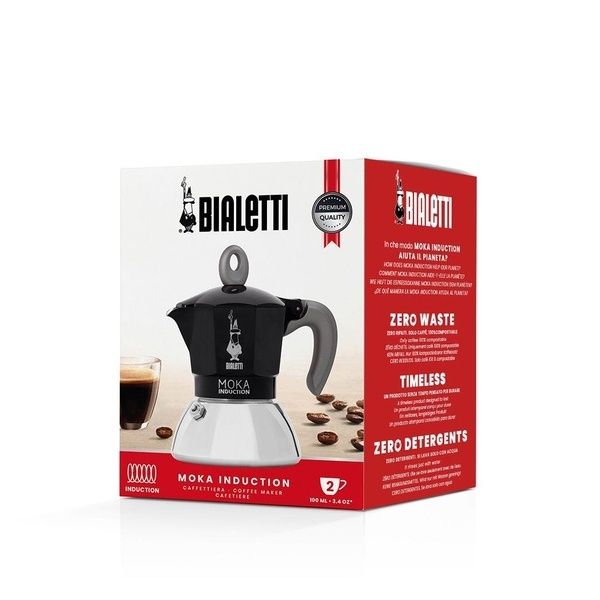 Moka Induction è la prima Moka adatta all'utilizzo sui piani cottura a induzione. L'innovativa tecnologia della caldaia bi-layer permette di avere un prodotto ad alte prestazioni: lo strato di acciaio esterno garantisce il funzionamento anche sui piani di cottura ad induzione, mentre lo strato di alluminio interno assicura una distribuzione omogenea del calore.