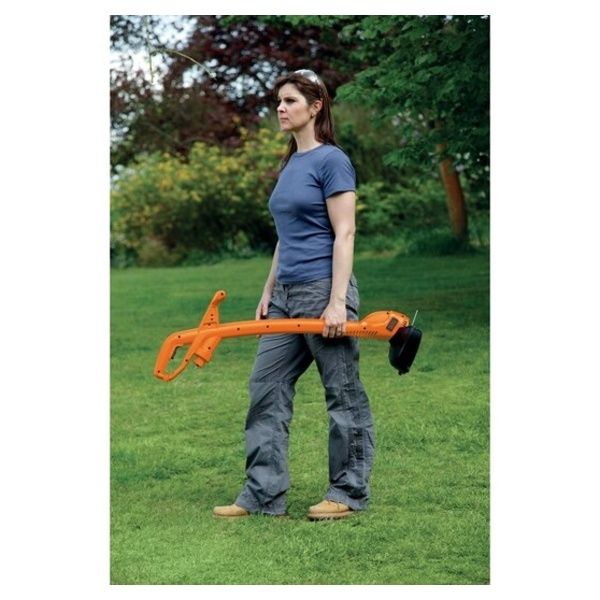 Tagliabordi con impugnatura doppia, leggero, comodo e facile da usare, dotato di motore da 350 W ed ampiezza taglio di 25 cm per mantenere al meglio giardini di piccole dimensioni.