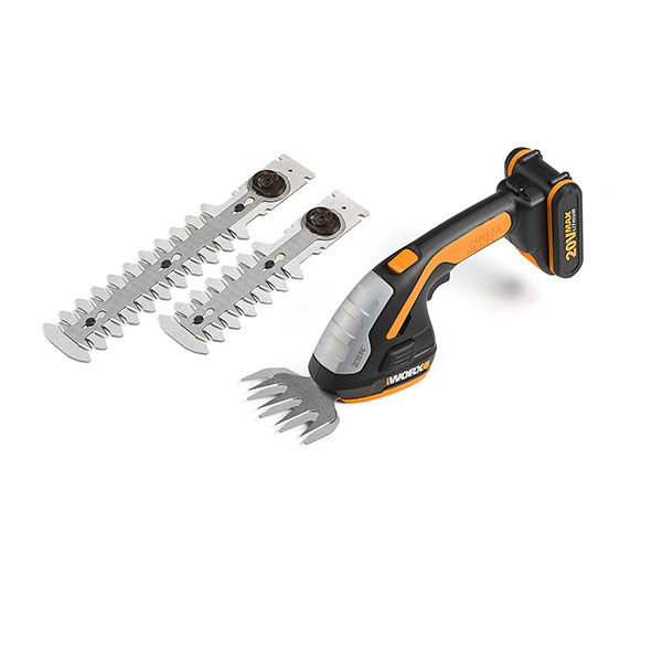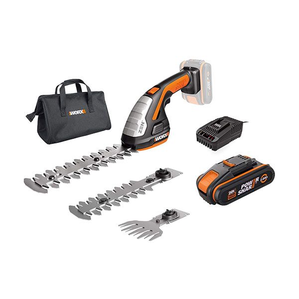 La forbice Worx WG801E è un prodotto a batteria da 20V agli ioni di litio concepito per la rifinitura, la modellazione di siepi e taglio dell'erba. E’ una forbice maneggevole e leggera (pesa solo 0.9kg) che consente di svolgere in modo semplice ed efficace tutti i lavori di rifinitura delle siepi o di tagli di erba.