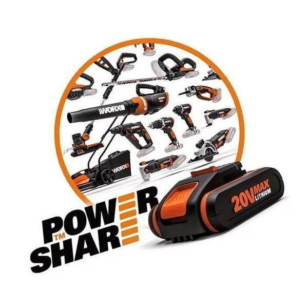 Che si tratti di un robot, un trapano a batteria o un soffiatore per foglie, la batteria può essere utilizzata in qualsiasi strumento Worx.