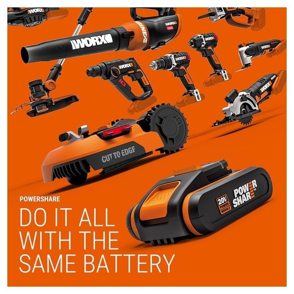 Ideale per gli utensili a batteria da Giardino Worx Linea Powershare: compatibile con tutta la gamma di utensili a batteria da 20 V.