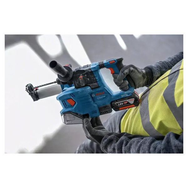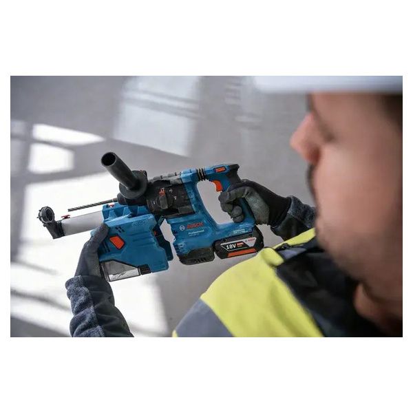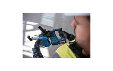 Per forare nel calcestruzzo, utilizzate l’aspiratore GDE 18V-12 Professional esclusivamente con il martello perforatore GBH 18V-22 Professional. Utilizzandoli in combinazione come un unico sistema, ne apprezzerete il peso ridotto e la pratica foratura a percussione con fissaggio dell’aspiratore con un semplice scatto, per lavorare a soffitto senza fatica.
