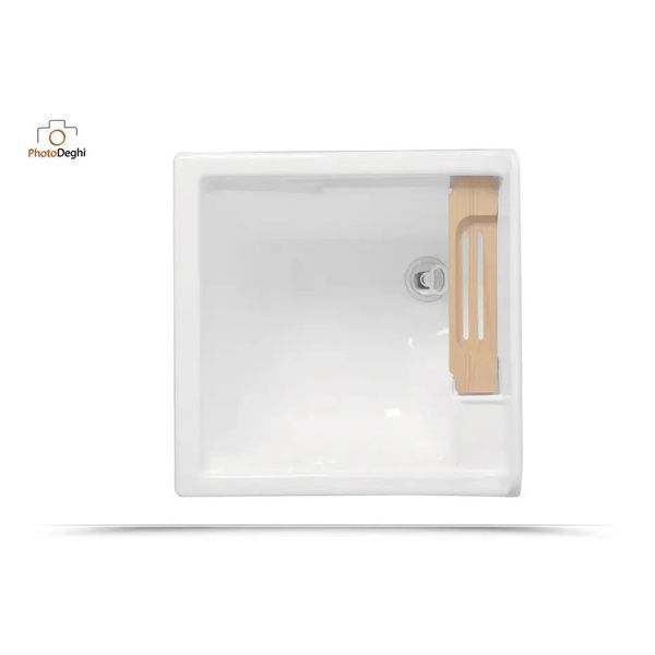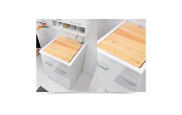 Il mobile si presenta in truciolare nobilitato da 18 mm, con frontali in laminato lucido bianco. L'apertura delle 2 ante è con maniglia cromata. Viene fornito di tavola lavapanni in legno massello, sifone e troppopieno.