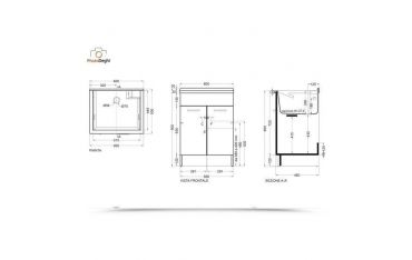 Il mobile si presenta in truciolare nobilitato da 18 mm, con frontali in laminato lucido celeste. L'apertura delle 2 ante è con maniglia cromata. Viene fornito di tavola lavapanni in legno massello, sifone e troppopieno.