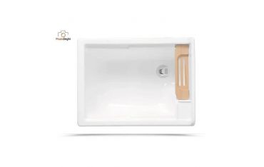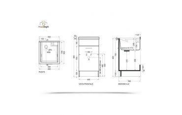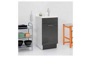 Il mobile si presenta in truciolare nobilitato da 18 mm, con frontali in laminato lucido antracite. L'apertura dell'anta è con maniglia cromata. Viene fornito di tavola lavapanni in legno massello, sifone e troppopieno.