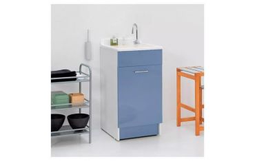 L'arredamento rispecchia il nostro stile di vita e le nostre abitudini. La creatività si fa spazio anche in lavanderia e l'eleganza si unisce alla praticità. Colavene condivide un concept innovativo e crea il lavatoio a terra con frontale celeste lucido e alto 86 cm con 1 anta e lavabo abs metacrilato. Solo materiali resistenti per un'esperienza di arredo senza paragoni.