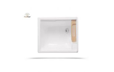Il mobile si presenta in truciolare nobilitato da 18 mm, con frontali in laminato lucido celeste. L'apertura dell'anta è con maniglia cromata. Viene fornito di tavola lavapanni in legno massello, sifone e troppopieno.