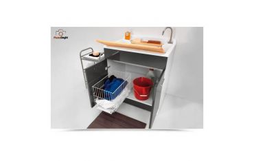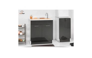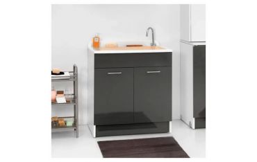 Il mobile si presenta in truciolare nobilitato da 18 mm, con frontali in laminato lucido antracite. L'apertura delle 2 ante è con maniglia cromata. Viene fornito di cesto portabiancheria, tavola lavapanni in legno massello, sifone e troppopieno.