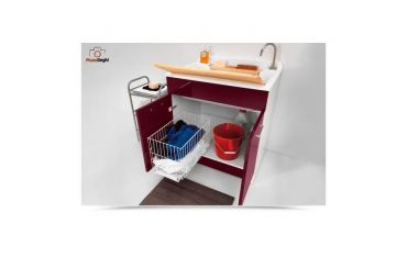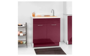 Il mobile si presenta in truciolare nobilitato da 18 mm, con frontali in laminato lucido melanzana. L'apertura delle 2 ante è con maniglia cromata. Viene fornito di cesto portabiancheria, tavola lavapanni in legno massello, sifone e troppopieno.